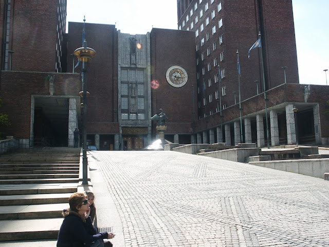 Some mention was made of the headquarters building of the Nobel Peace Prize organization. So much is sometimes lost in passing that at the time I believed this building shown above of Oslo City Hall was it. Researching now, I think perhaps we didn't see the Nobel Peace Prize organization building. Anyway, I don't locate any photos of it in my pictures